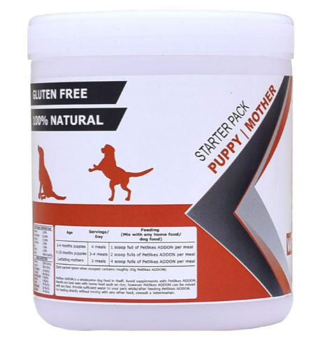 ADD ON for Weight Gain is also a highly economical way of feeding high quality premium protein to your dogs daily. Our product is first of its kind through which you can control your pet’s protein content. ADD ON can be mixed with cooked rice or other cooked gluten free grains like oats which gives full control on the amount of protein to be fed to dogs. When mixed according to the feeding guidelines mentioned, the growth is guaranteed in puppies in 3-4 weeks. ADD ON can also be fed in the form of spread on Indian foods like chapatti, roti, whole wheat bread etc. It also enhances the intake of low caloric, low protein economy dog food when added as topping. It contains a high protein and high fat mix to enable it to be used as a value-added food spread. ADD ON contains Omega 3 fatty acid and fish cartilage which improves joint health, fur growth and shine.